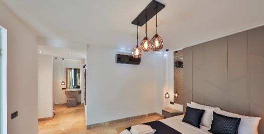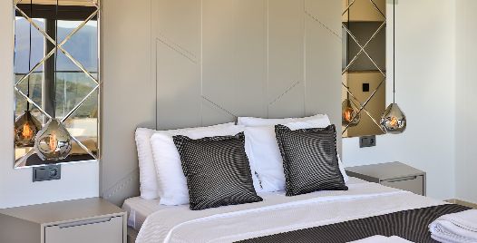 6. Yatak Odası : Çift kişilik yatak, klima, komodin, makyaj masası, elbise dolabı, banyo ve tuvalet bulunmaktadır. 3. katta Deniz Manzaralı Balkonu mevcuttur.