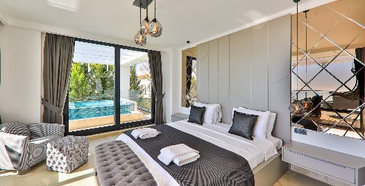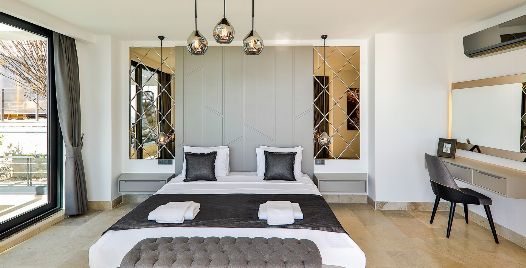 4. Yatak Odası : Çift kişilik yatak, klima, komodin, makyaj masası, elbise dolabı, banyo ve tuvalet bulunmaktadır. 2. katta Deniz Manzaralı Balkonu mevcuttur.