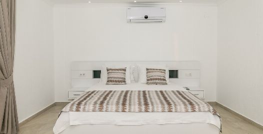Yatak odalarının biri çift kişilik yatak, klima, ebeveyn banyosu ve jakuzisiyle ön plana çıkar. İkinci yatak odasında ise iki tek kişilik yatak, klima ve banyo bulunur. Geniş camlardan doğa manzarasını izleyerek güne başlamanın keyfini çıkarabilirsiniz. Villamızın en özel alanlarından biri de gün batımına karşı jakuzide dinlenebileceğiniz veya bahçedeki salıncakta huzurlu anlar geçirebileceğiniz dış mekandır.