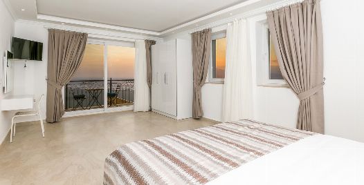 1. Yatak Odası : Havuza direkt çıkışı bulunan çift kişilik süit odamızda tatil keyfinize keyif katacak, sizi dinlendirecek jakuzi bulunmaktadır. Klima, komodin, makyaj masası, televizyon, elbise dolabı bulunmaktadır.