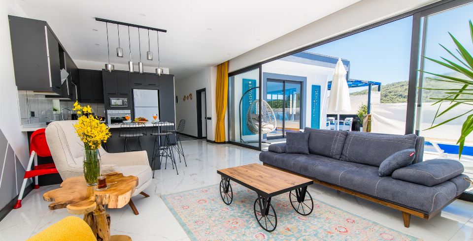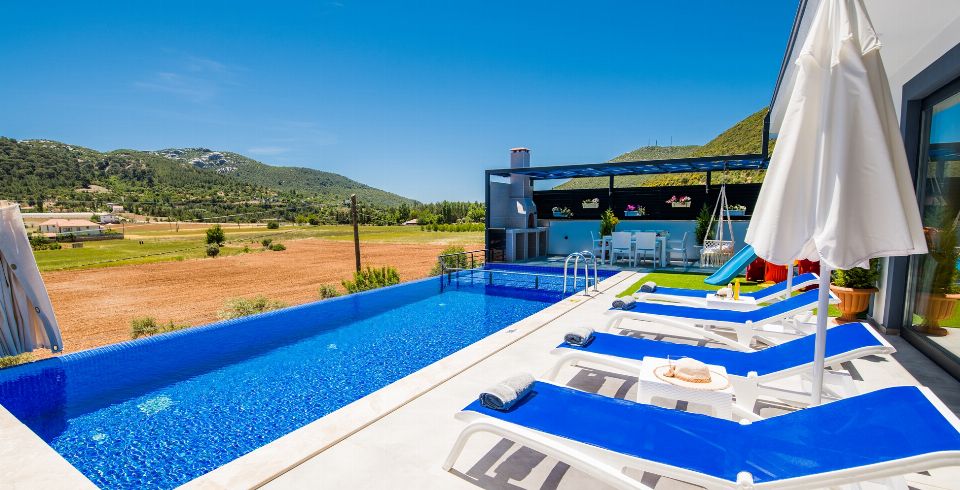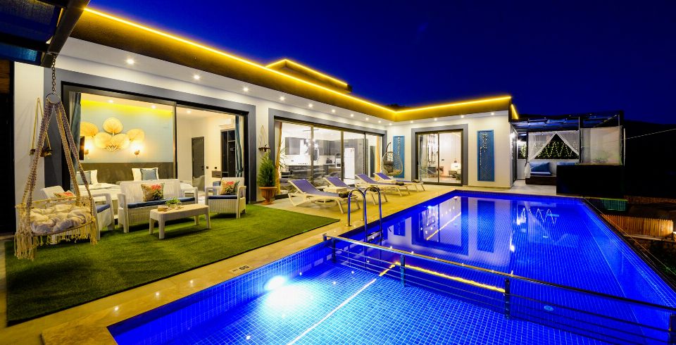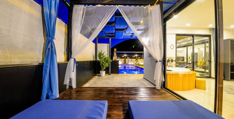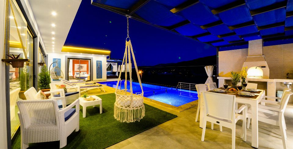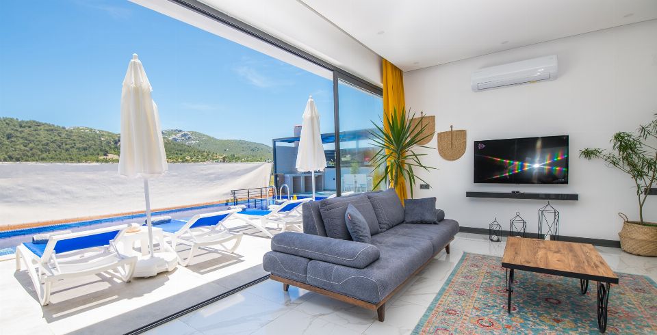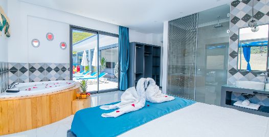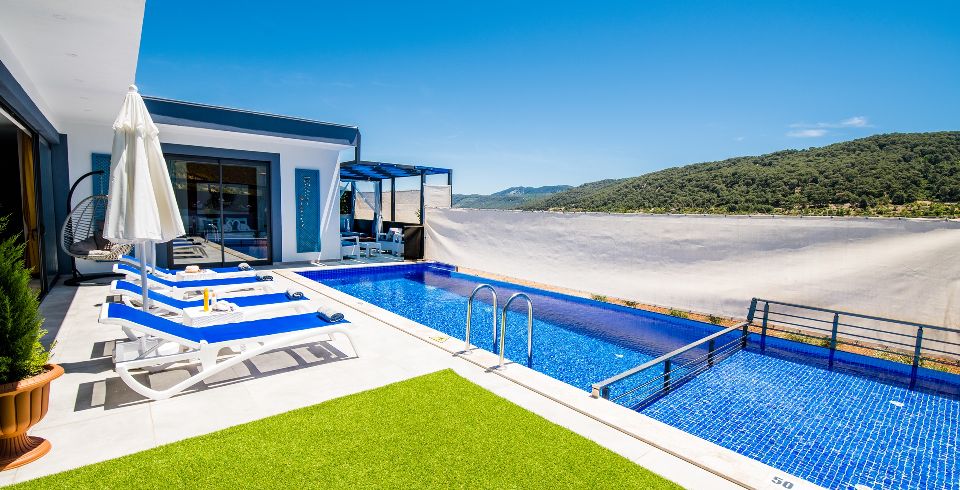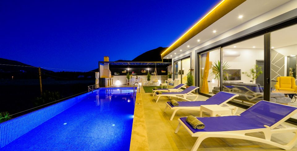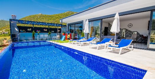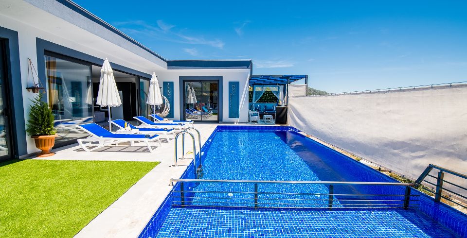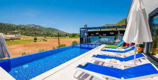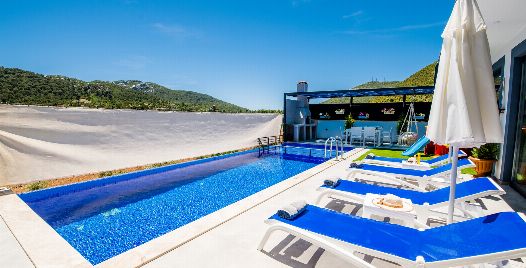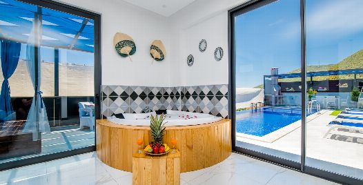 Villa Lavinya, Kalkan Sarıbelen bölgesinde yer almaktadır. 2 yatak odasına sahip tatil villamız 4 kişilik konaklama kapasitesine sahiptir. Doğa içinde huzurlu bir konuma sahip olan tatil villası havuz alanı bahçe alanı ile sizlere gözlerden uzakta keyifli bir tatil ortamı sunmaktadır. Her detayıyla huzurlu bir villa tatili geçirebileceğiniz villamızın süit yatak odasında jakuzi bulunmaktadır.