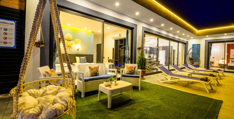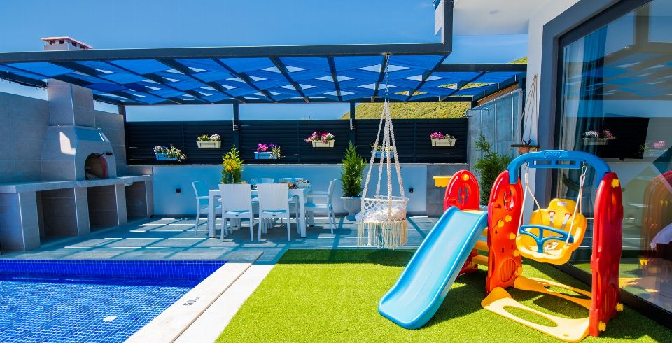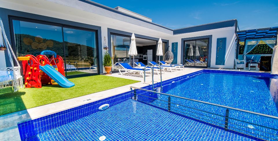 Havuz ve Bahçe: Havuz ve bahçesi korunaklı olup dışarıdan gözükmemektedir. Özel yüzme havuzu, şezlong, şemsiye, oyun parkı, salıncak, yemek masası ve barbekü, masa tenisi bulunmaktadır.