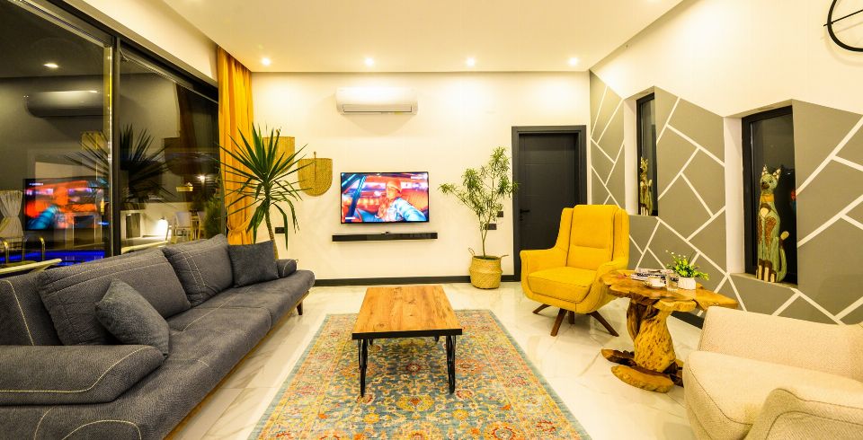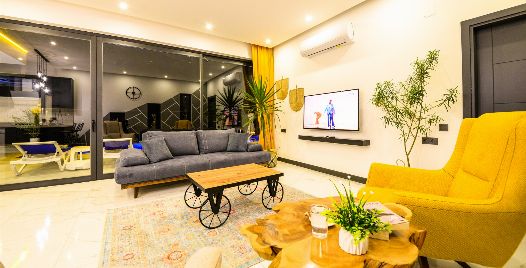 Salon: Villamızda tüm ihtiyaçlarınızı karşılayacak şekilde yeterli mutfak araç gereçleri ve ayrıca salonumuzda TV, oturma grubu, sehpa vb. eşyalar bulunmaktadır.