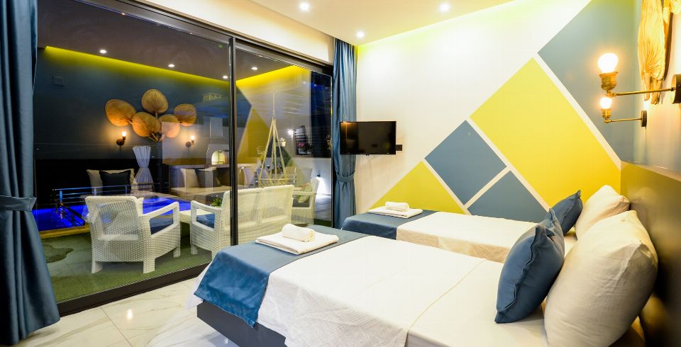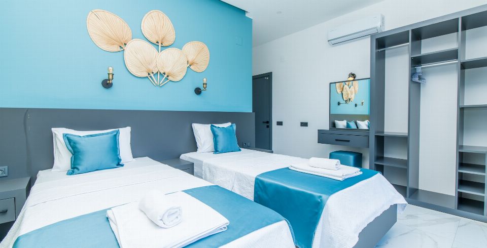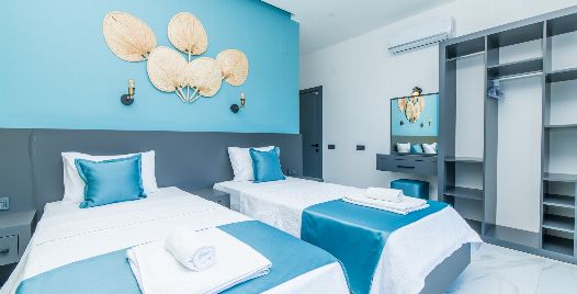 2. Yatak Odası: 2 adet tek kişilik yatak, elbise dolabı, makyaj masası, komodin, klima ve banyo-wc bulunmaktadır.