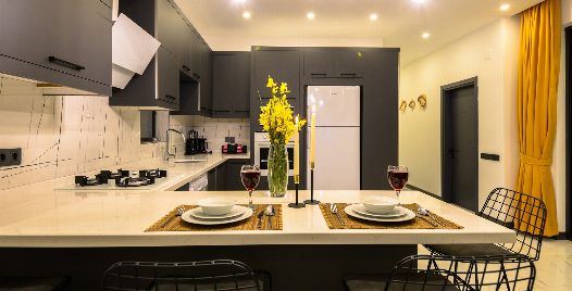Mutfak: Villamızın mutfağında buzdolabı bulaşık makinası, çamaşır makinası, 4'lü ocak, kettle, mikrodalga fırın, yemek takımı bulunmaktadır.