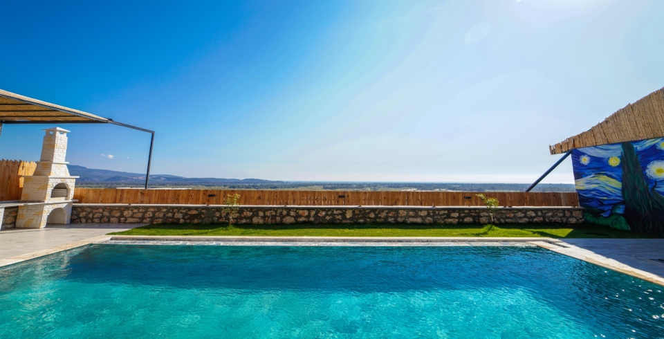 Havuz ve Bahçe : Villamızın özel yüzme havuzun muhafazakar olup dışardan görünmemektedir. Şezlong, şemsiye, yemek masası, salıncak ve barbekü bulunmaktadır.