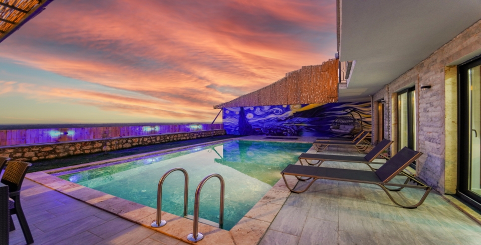 Villa Legendary 1, Fethiye merkeze 64 km uzaklıkta bulunan Kumluova bölgesinde yer almaktadır. 4 Yatak odası ile 8 kişilik konaklama kapasitesine sahip olan villamız geniş aileler ve arkadaş grupları için keyifli bir tatil imkanı sunmaktadır. Muhteşem doğa manzarasına sahip olan villamızda jakuzi, sauna ve kapalı ısıtmalı havuz bulunmaktadır. Şehrin gürültüsünden uzakta doğa ile baş başa huzurlu bir villa tatili geçirebileceğiniz villamız sizleri bekliyor.