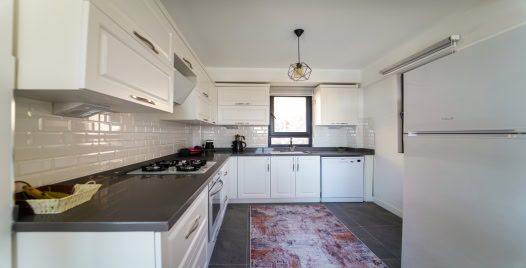 Mutfak : Villamızın mutfağında Amerikan mutfak yemek takımı, buzdolabı, 4'lü ocak, kettle , çatal bıçak takımı, tencere tava takımı, bulaşık makinası bulunmaktadır.