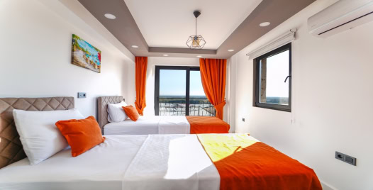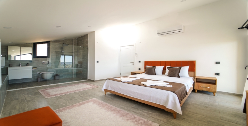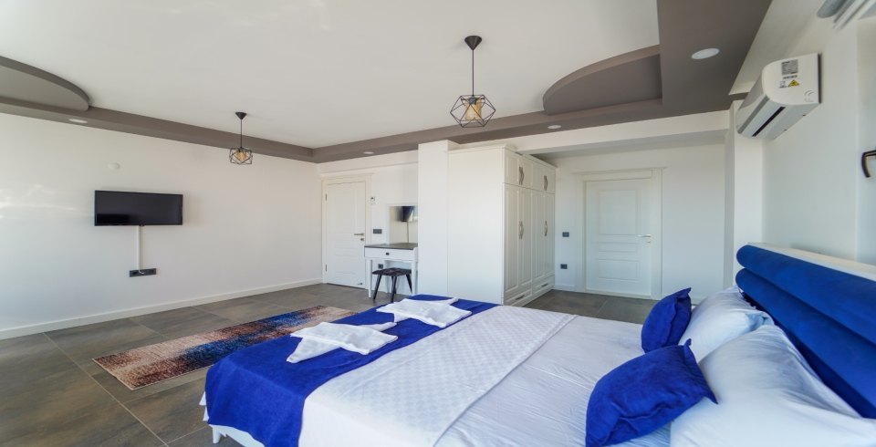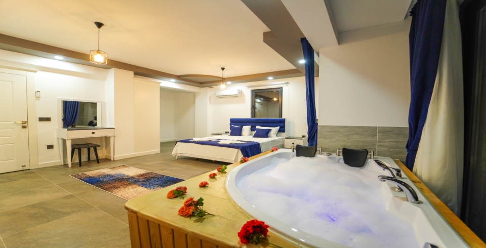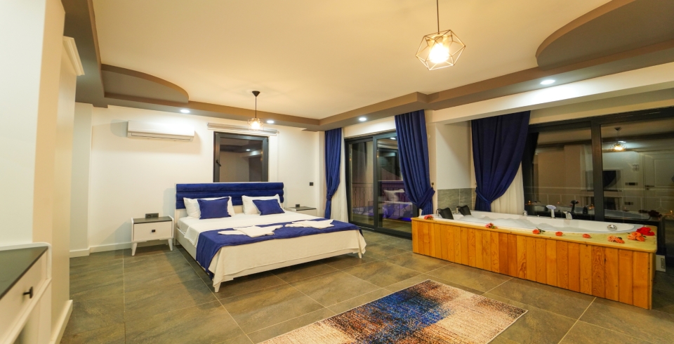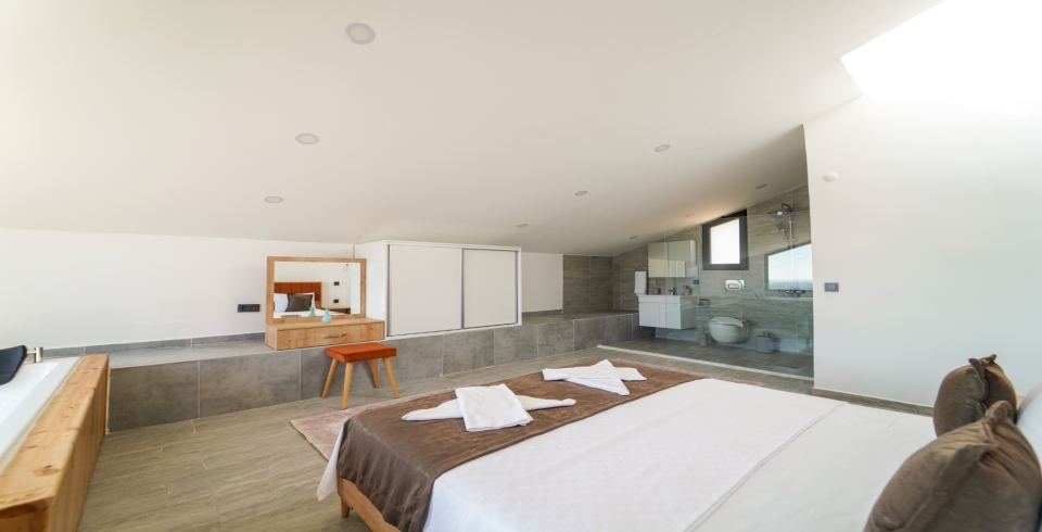 3. Yatak Odası: 1 adet çift kişilik yatak, komodin, elbise dolabı, klima, jakuzi, banyo ve tuvalet bulunmaktadır.