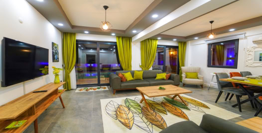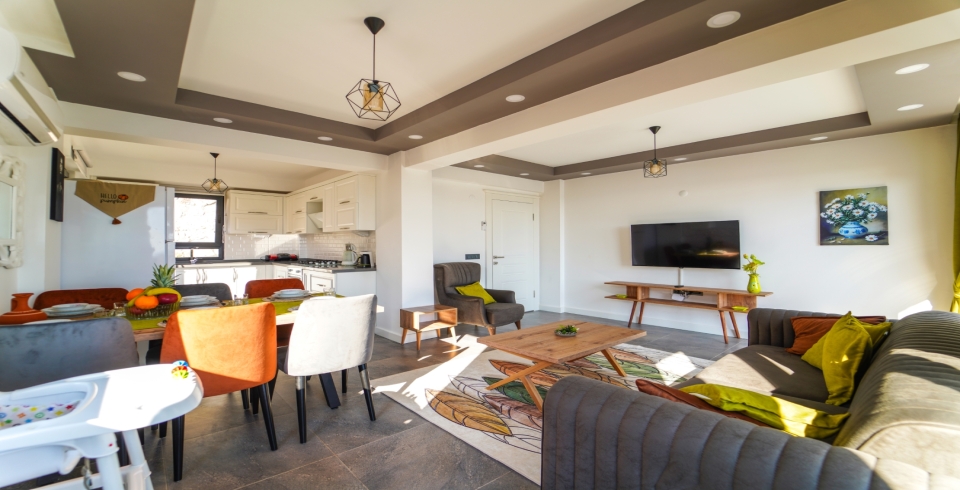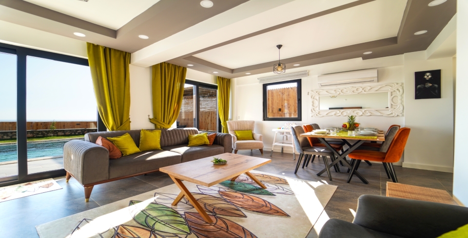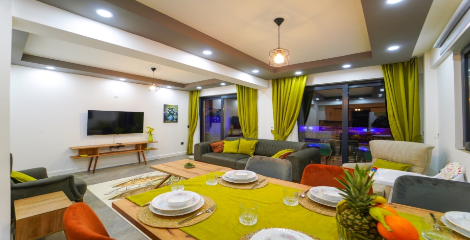 Salon : Villamızın salonunda oturma grubu, TV, internet, yemek masası, sehpa bulunmaktadır.