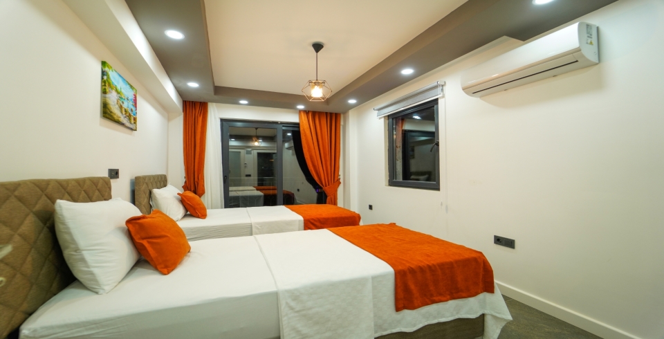 2.Yatak Odası: 1 adet çift kişilik yatak, komodin, elbise dolabı, klima, jakuzi, banyo ve tuvalet bulunmaktadır.