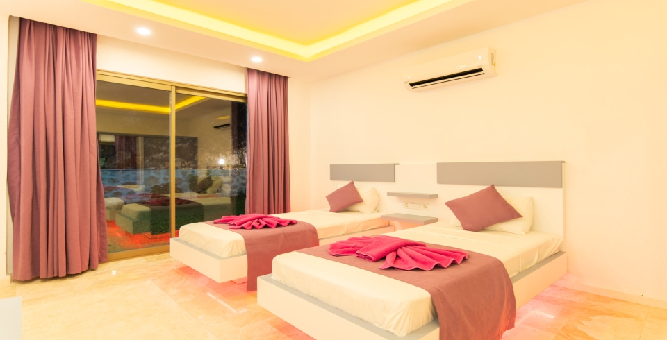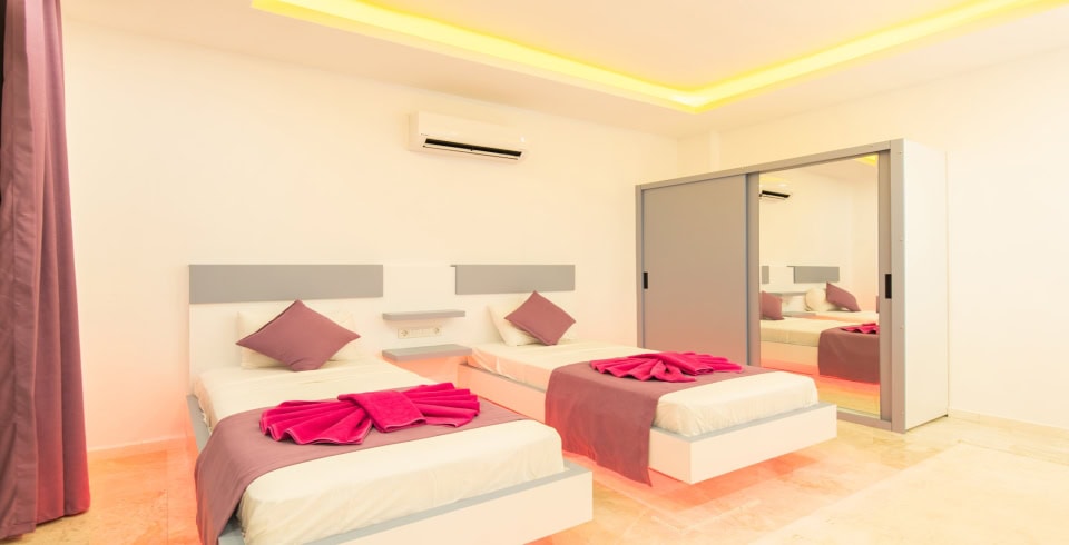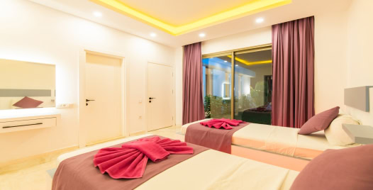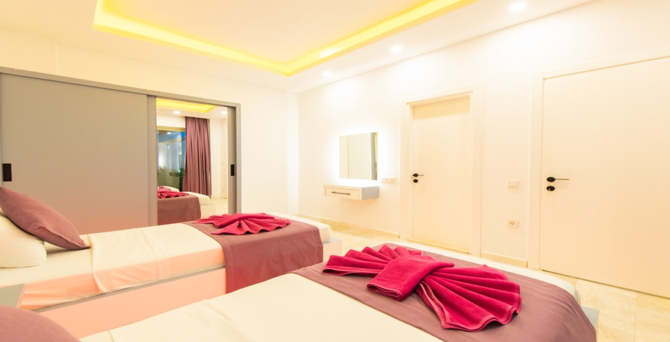 2. Yatak Odası: 2 adet tek kişilik yatak klima, komodin, elbise dolabı, makyaj masası, banyo ve tuvalet bulunmaktadır.