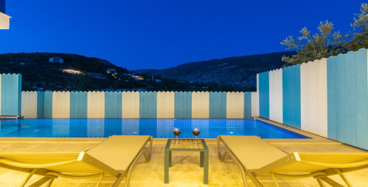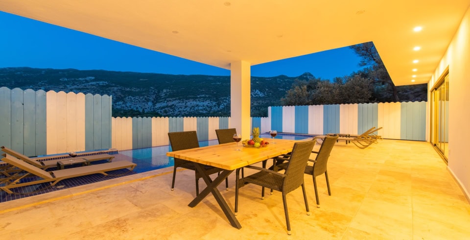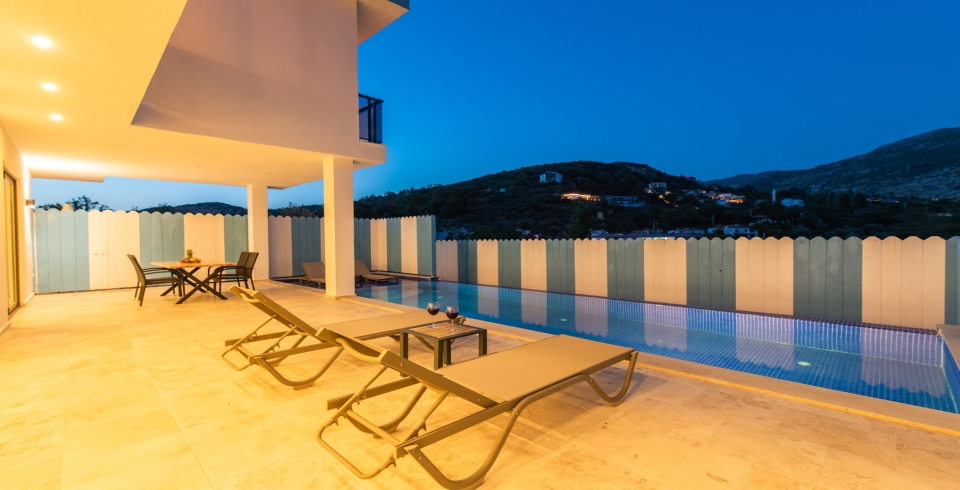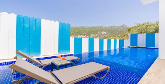 Villamız Kalkan İslamlar bölgesinde yer almaktadır. 2 yatak odasına sahip tatil villamız 4 kişilik konaklama kapasitesine sahiptir. Doğa içinde bir konuma sahip olan tatil villamızın havuz alanı sizlere keyifli bir tatil ortamı sunmaktadır. Balayı çiftleri ve çekirdek aileler için ideal bir seçenek olan muhafazakar hassasiyete sahip misafirlerimiz içinde uygun bir tatil ortamı sunmaktadır.
