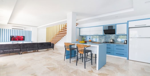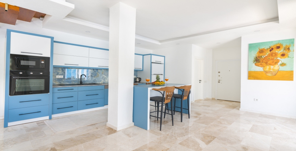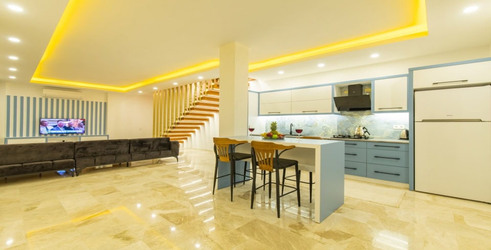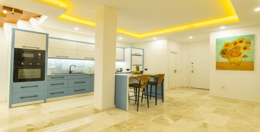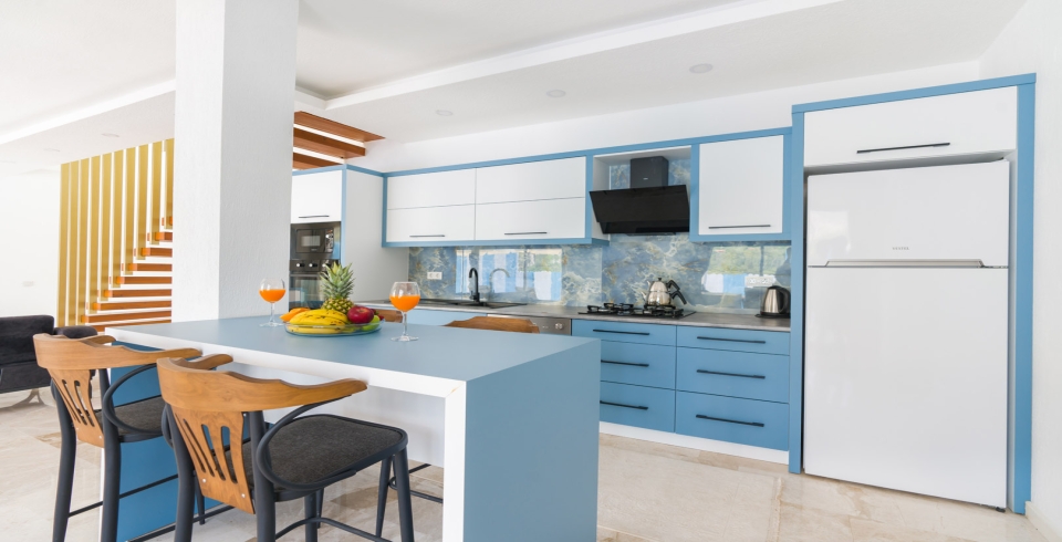 Mutfak: Villamızın mutfağında buzdolabı bulaşık makinası, çamaşır makinası, 4'lü ocak, ketıl, mikro dalga fırın, filtre kahve makinası yemek takımı bulunmaktadır.