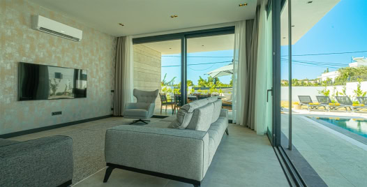 Salon : Salon içerisinde oturma grubu, TV, klima, sehpa, bulunmaktadır.