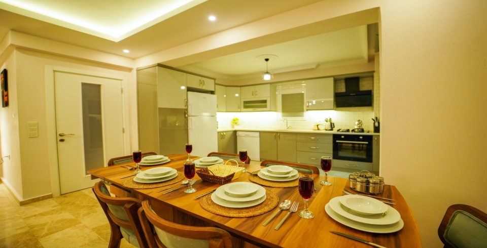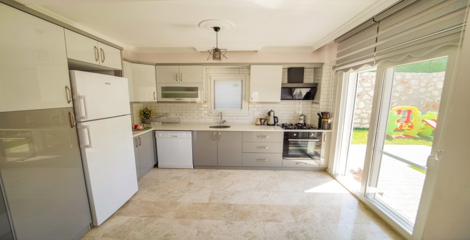 Mutfak: Villamızın mutfağında buzdolabı bulaşık makinası, çamaşır makinası, 4'lü ocak, ketıl, tencere tava takımı, yemek takımı bulunmaktadır.