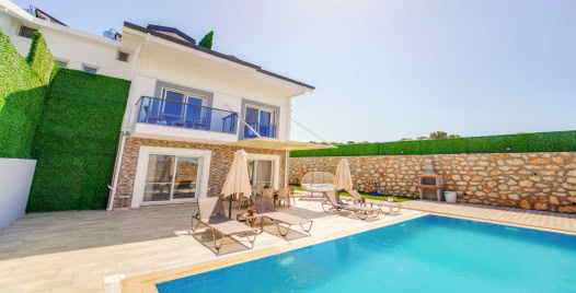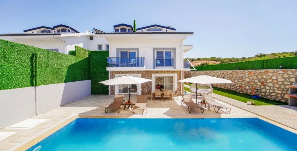 Havuz ve Bahçe: Özel yüzme havuzu, şezlong, şemsiye, salıncak, yemek masası ve barbekü ve çocuk oyun alanı bulunmaktadır.