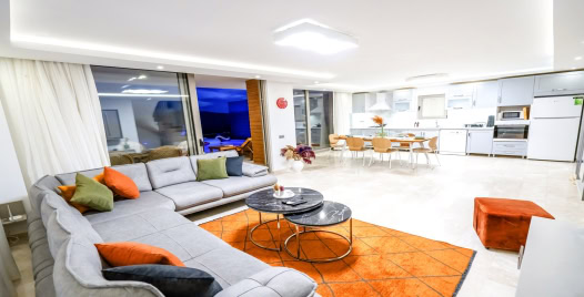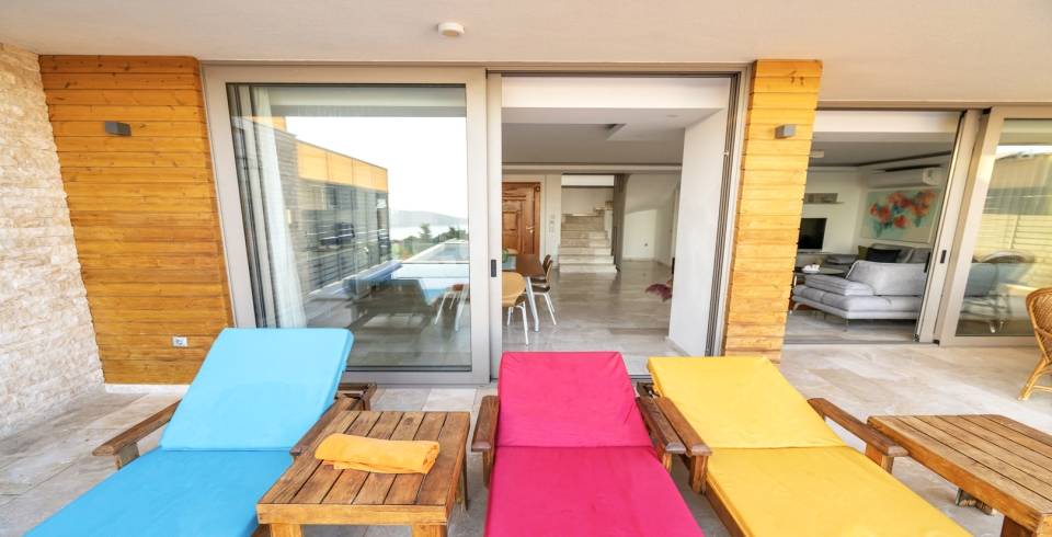 Salon: Salonumuzda oturma grubu, WİFİ, uydu alıcı, LCD TV, klima, sehpa, ütü, ütü masası, lavabo ve tuvalet bulunmaktadır. Havuz terasına çıkış yapılabilmektedir.