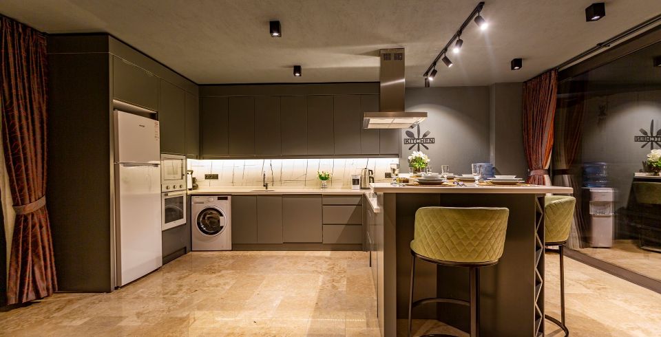 Mutfak: Villamızın mutfağında buzdolabı bulaşık makinası, çamaşır makinası, 4'lü ocak, ketıl, mikro dalga fırın, filtre kahve makinası yemek takımı bulunmaktadır.