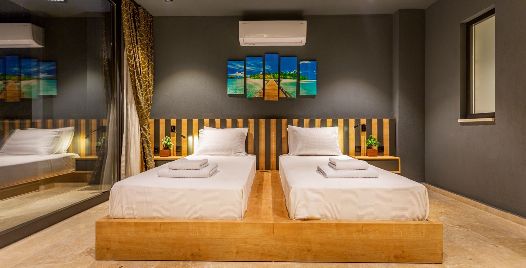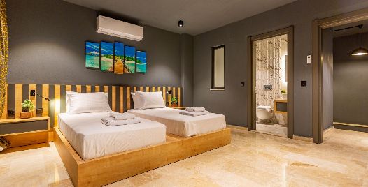 2: Yatak Odasi: 2 adet tek kisilik yatak, klima, elbise dolabi, makyaj masasi, komodin banyo ve tuvalet bulunmaktadir.