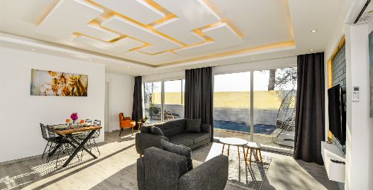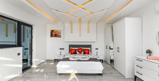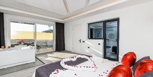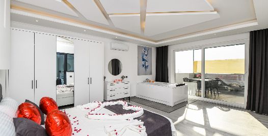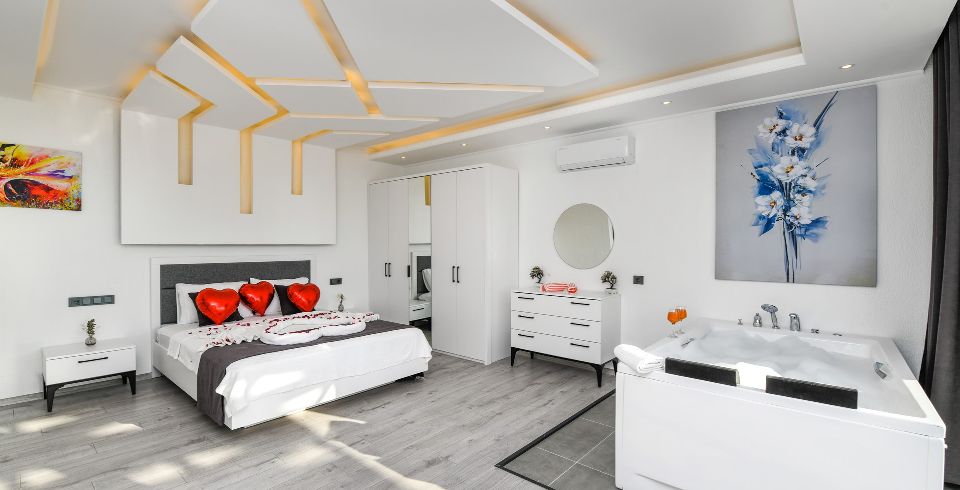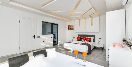 1. Yatak Odası : Suit yatak odası 1 adet çift kişilik yatak, klima, jakuzi, gardırop, komodin, yer almaktadır.