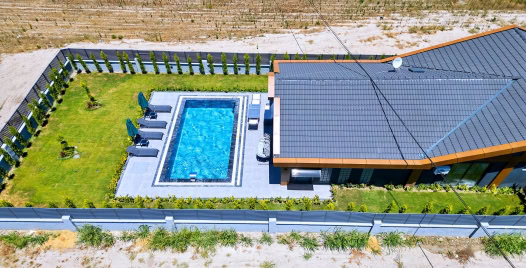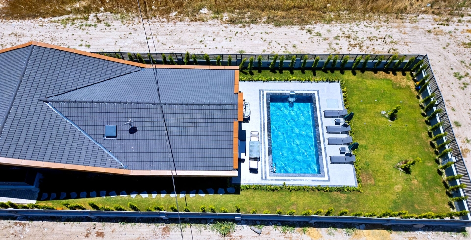 Havuz ve Bahçe: Bahçe içerisinde korunaklı özel yüzme havuzu, şezlong ,şemsiye, yemek masası ve sandalyeler, bahçe oturma grubu, salıncak ve barbekü yer almaktadır.