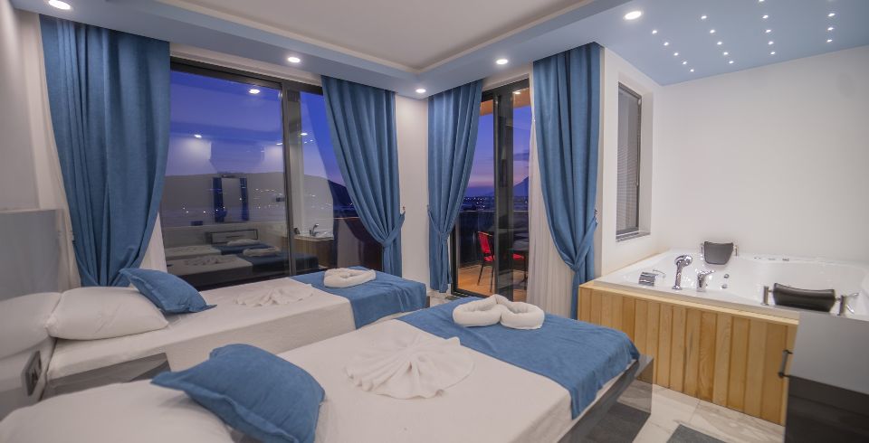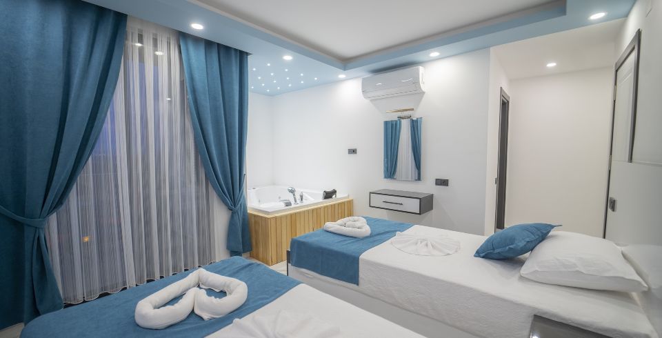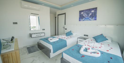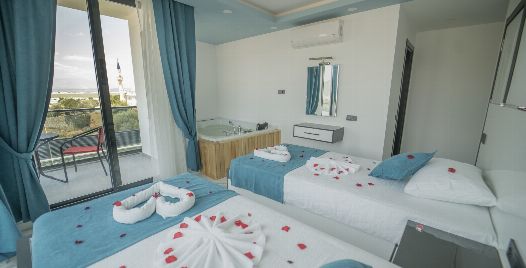 2: Yatak Odası: 2 adet tek kişilik, klima, jakuzi, komodin, elbise dolabı, makyaj masası banyo ve tuvalet bulunmaktadır. Yataklar birleşiyor.