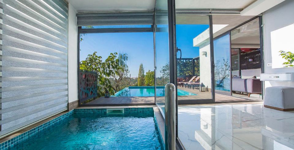 Havuzu korunaklı villalarımızda kesinlikle %100 görünmememe garantisi vermemekteyiz bu villalarımızda her zaman %5 sakınma payı mevcuttur.