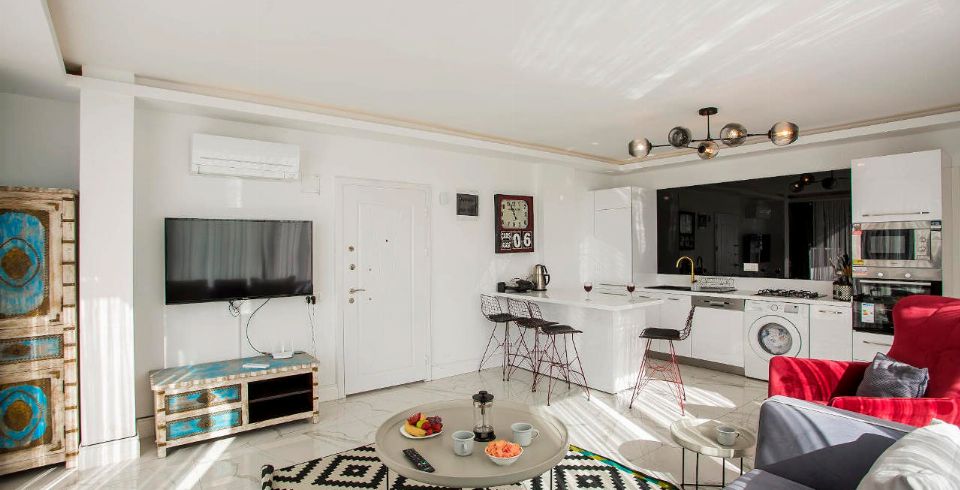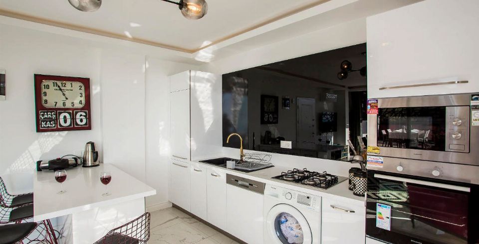 Mutfak: Amerikan mutfağında, buzdolabı, çamaşır makinesi, bulaşık makinesi, elektrikli su ısıtıcısı(kettle), fırın, tost makinesi, mikrodalga fırın, ekmek kızartma(tost) makinesi, yemek masası, yemek takımı, mutfak araç ve gereçleri bulunmaktadır.