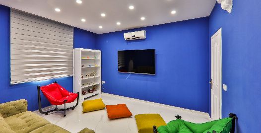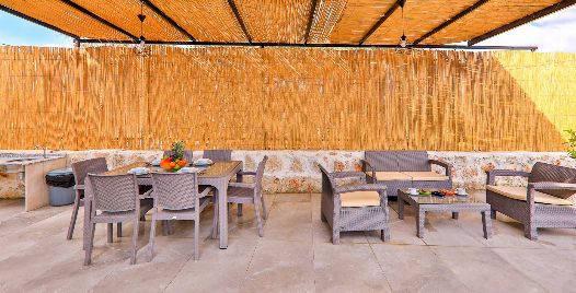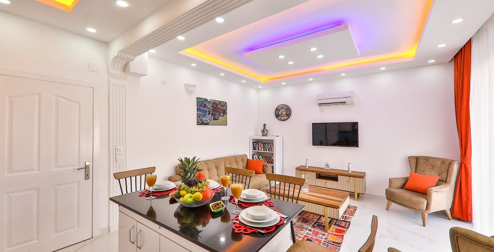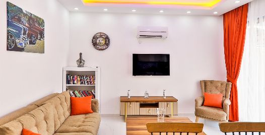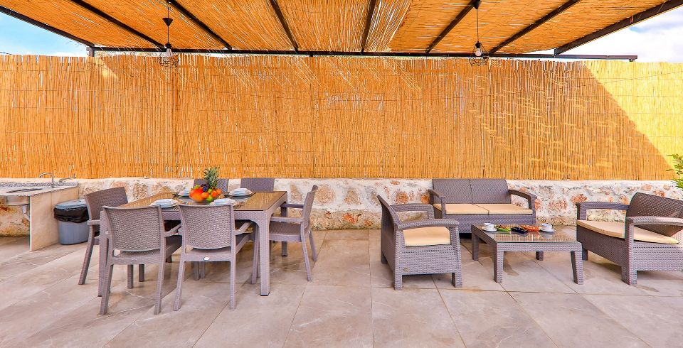 Salon: Villa salonunda konforlu oturma grubu, klima, TV, internet, uydu alıcı, yemek masası, sehpa bulunmaktadır.