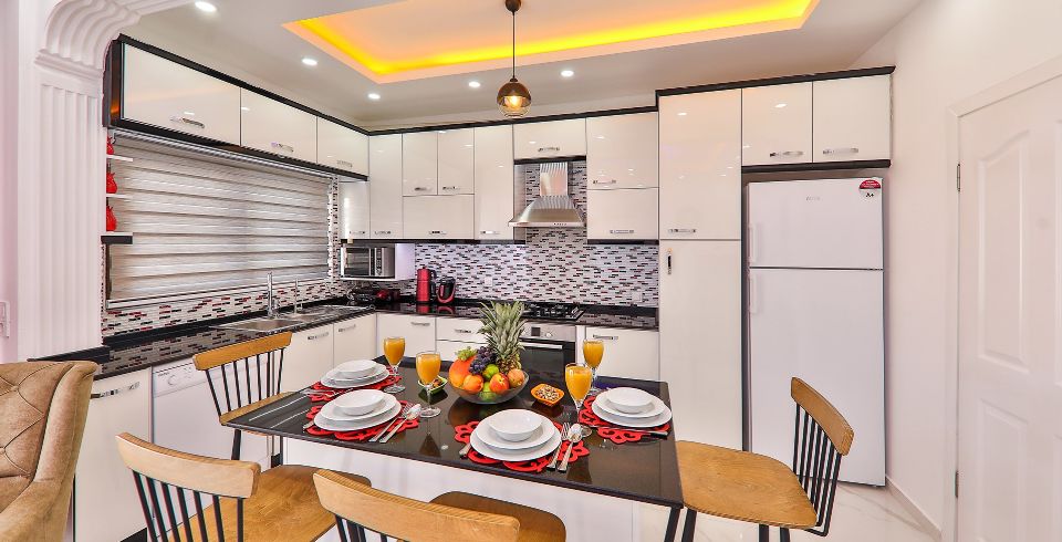 Mutfak: Villamızın mutfağında buzdolabı bulaşık makinası, çamaşır makinası, 4 lü ocak, ketıl, yemek takımı bulunmaktadır.