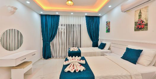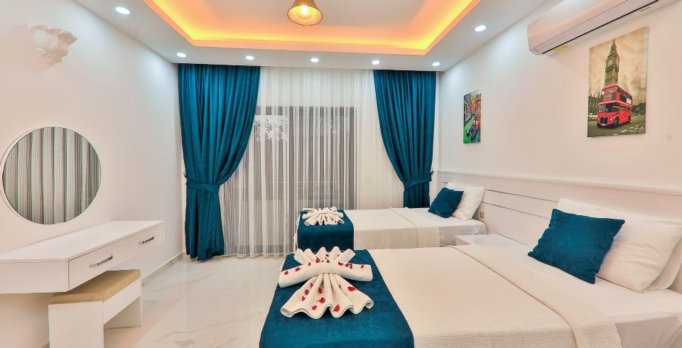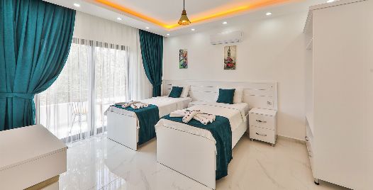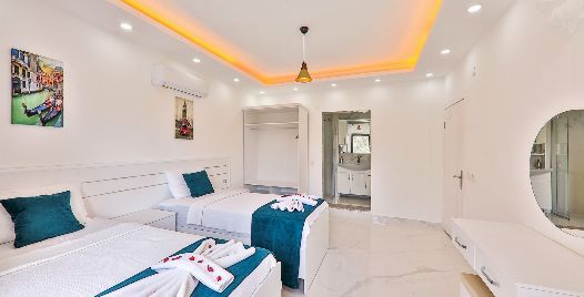 2: Yatak Odası: 2 adet tek kişilik yatak, klima, komodin, elbise dolabı, makyaj masası, TV banyo ve tuvalet bulunmaktadır.