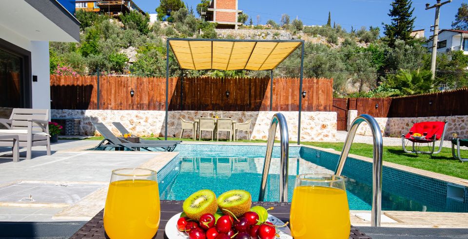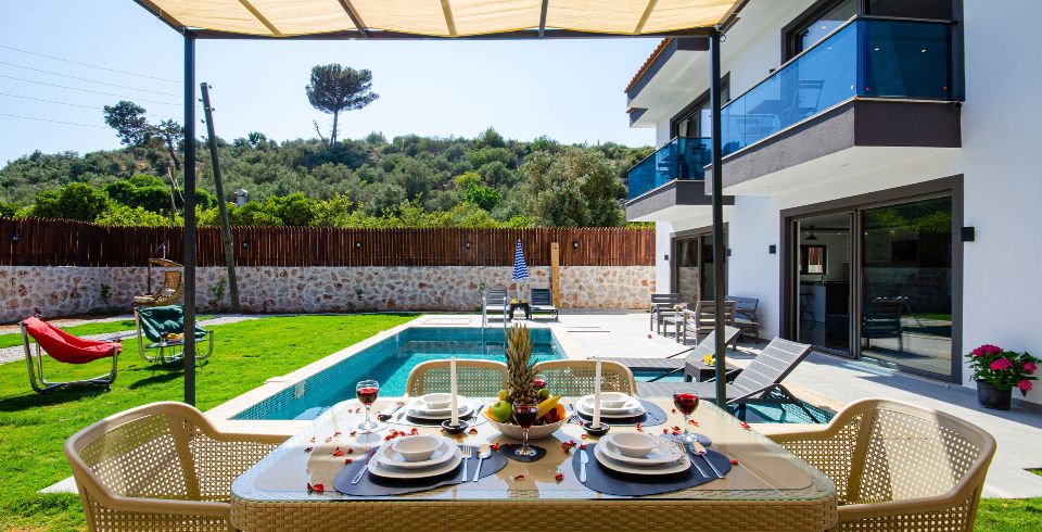 Not : Kiralık villamızın havuz alanı % 50 korunaklı olup birkaç noktada sakınma payı bulunmaktadır