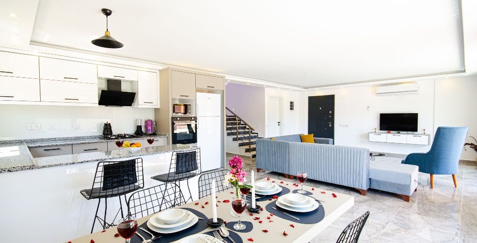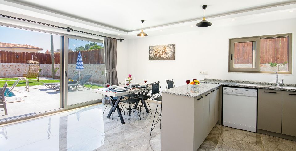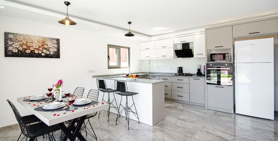 Mutfak: Villamızın mutfağında buzdolabı bulaşık makinası, çamaşır makinası, 4'lü ocak, ketıl, 4 kişilik yemek takımı bulunmaktadır.