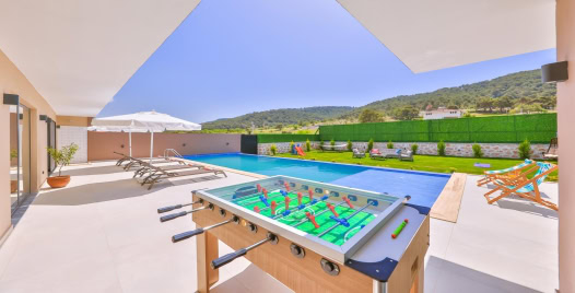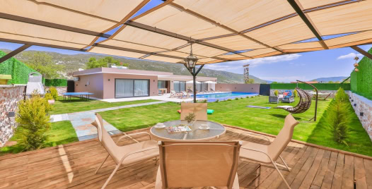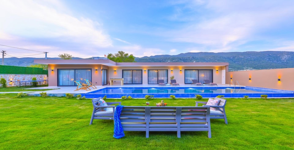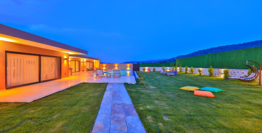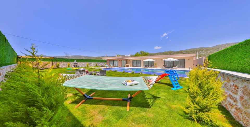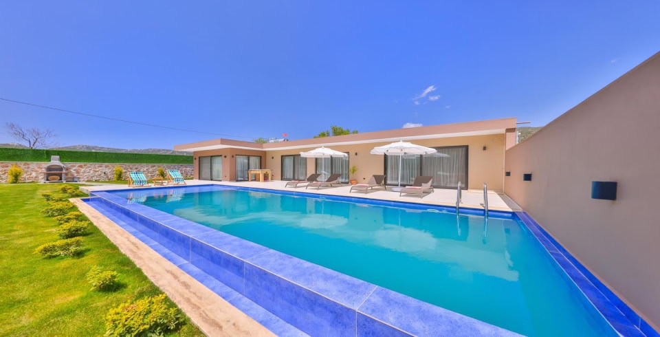 Havuz ve Bahçe : Özel yüzme havuzu bulunan villamızın havuz terasında şemsiye, şezlong, barbekü, oturma alanı, yemek masası ve sandalyeler bulunmaktadır.