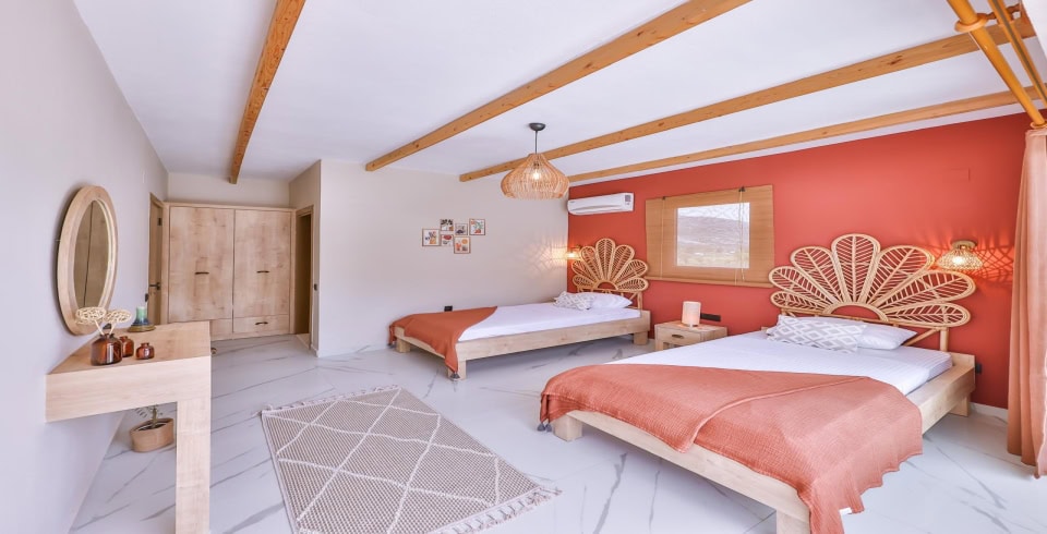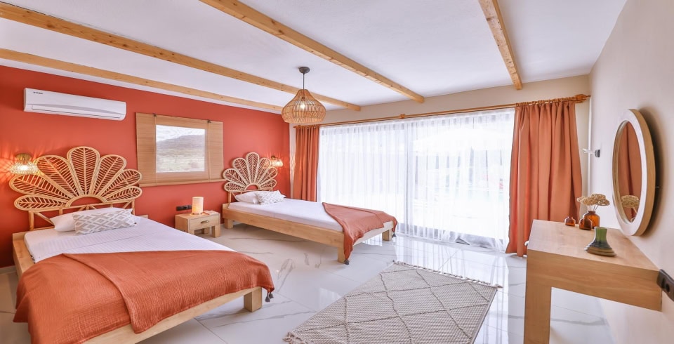 2. Yatak Odası : 2 adet tek kişilik yatak, klima, elbise dolabı, makyaj masası, komodin, banyo ve WC bulunmaktadır.