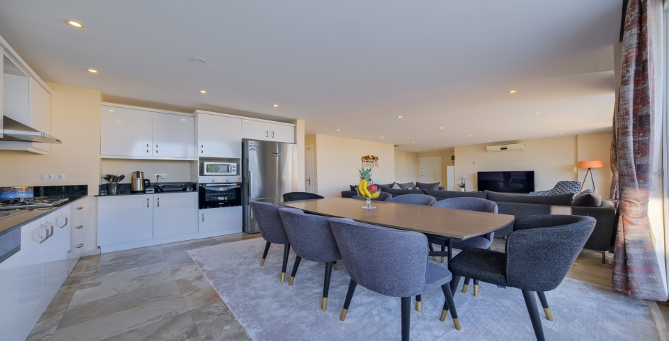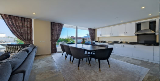 Salon : Modern amerikan mutfak içerisinde; buzdolabı, bulaşık makinesi, çamaşır makinesi, fırın, mikrodalga fırın, kettle, ocak, ekmek kızartma makinesi, yemek takımı, tava-tencere vb. ekipmanlar mevcuttur.