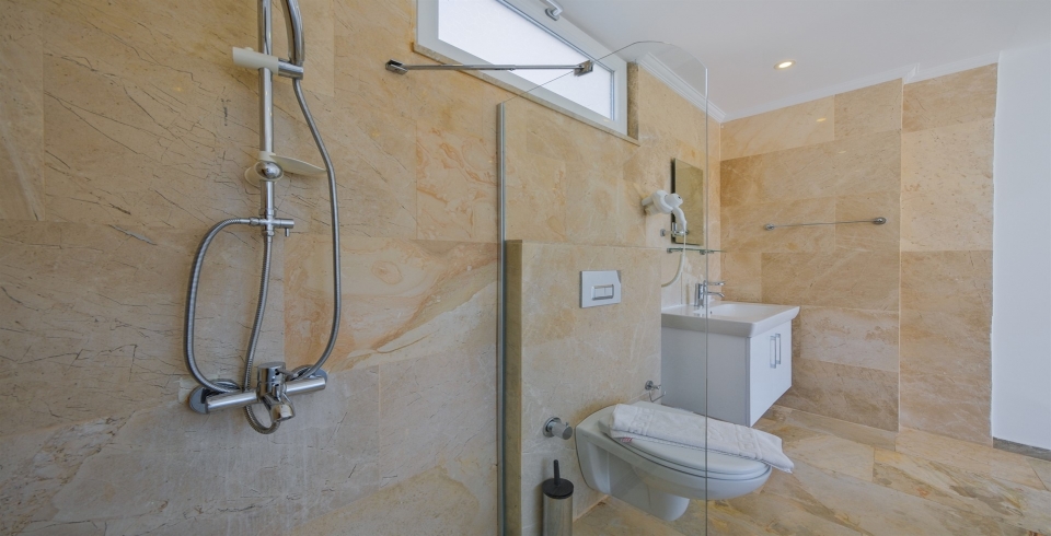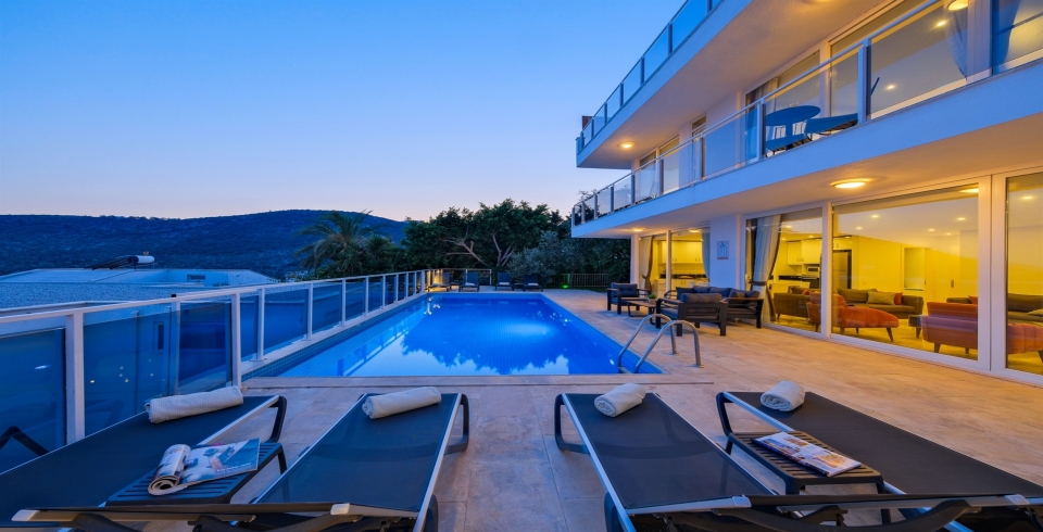 Geniş terasında özel yüzme havuzu yanı sıra şezlong, masa tenisi, barbekü, salıncak ve dinlenme köşeleri yer alır. Üst katta bulunan teras bölümünde panoramik manzaraya karşı jakuzi keyfi yapma imkânı, tatilinizi bir adım öne taşır. Merkeze yürüyerek yaklaşık 12–15 dakika mesafede konumlanan villa, plaj, restoran ve marketlere kısa sürede ulaşım sağlar. Manzara, eğlence ve mahremiyeti bir arada isteyenler için Villa Lumiere 3 unutulmaz bir tatil deneyimi vaat ediyor.