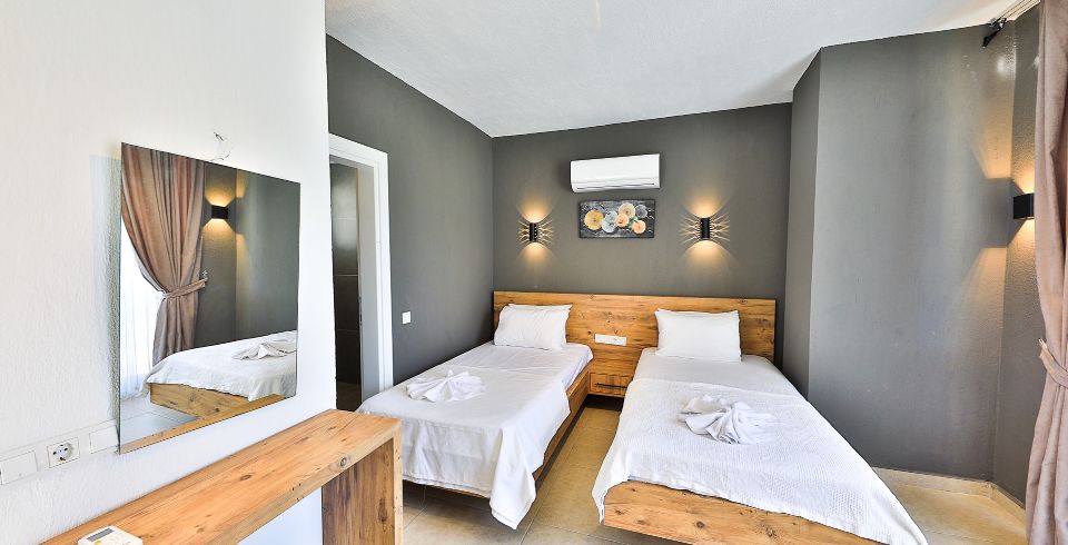 2. Yatak Odası: 2 adet tek kişilik yatak komodin, elbise dolabı, makyaj masası, banyo ve tuvalet bulunmaktadır.