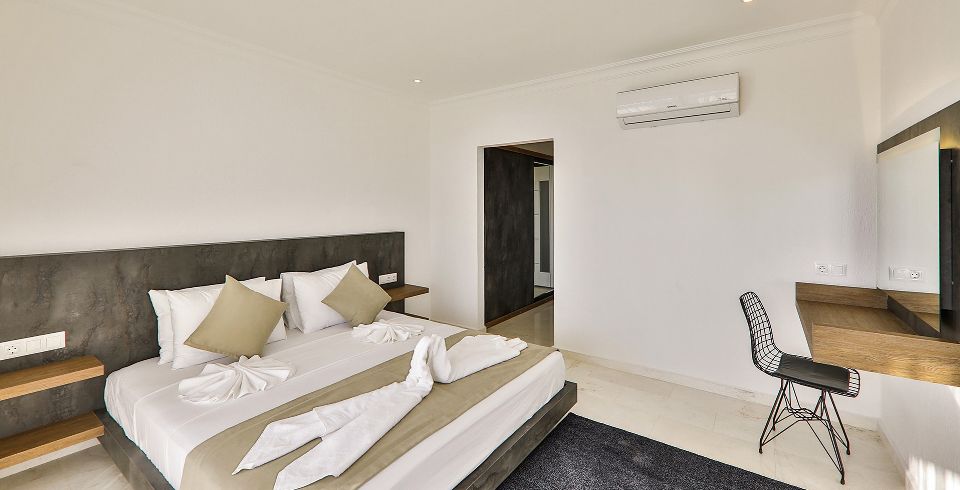 4. Yatak Odası: Süit aile yatak odası olup, 1 adet çift kişilik yatak, komodin, makyaj masası, elbise dolabı, klima, ve banyo tuvalet bulunmaktadır.