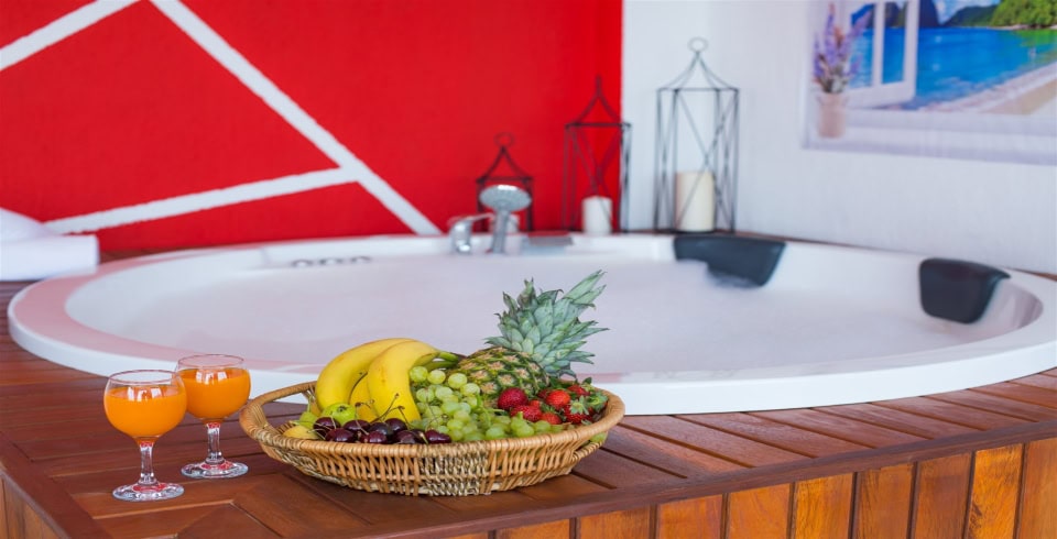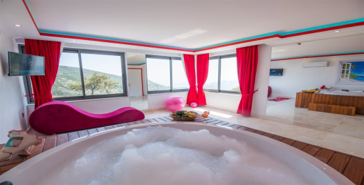 Oda içerisinde bulunan özel jakuzili havuzumuzun boyutları 4m X 2.50m, Derinlik: 1m’dir