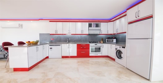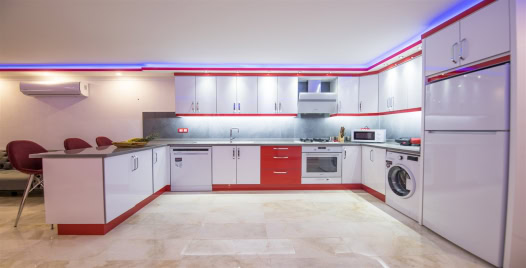 Mutfak : Mutfak bölümümüzde, buzdolabı, bulaşık makinesi, çamaşır makinesi, fırın, çatal & bıçak takımı, yemek takımı, kettle vb. mutfak ekipmanları bulunmaktadır.