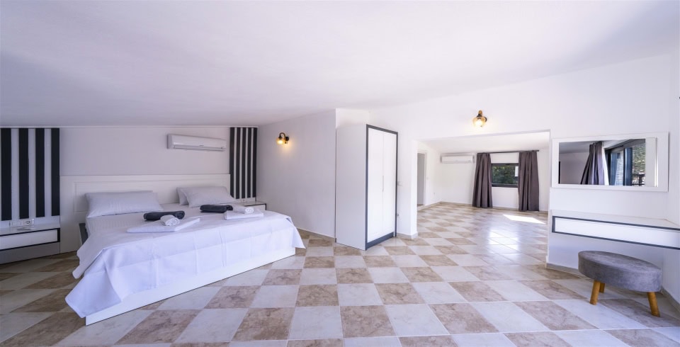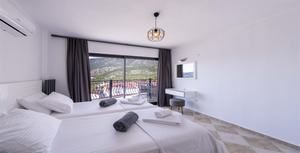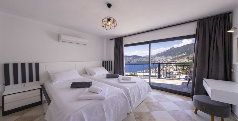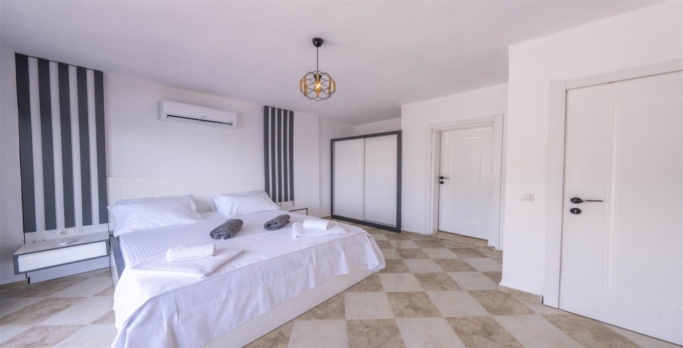 Villa Macka Kalkan, Kalkan’ın huzur dolu Kışla Bölgesi’nde, 3 yatak odası ve 6 kişilik kapasitesiyle hem aileler hem de arkadaş grupları için ideal bir kaçış noktası sunuyor. İki adet çift kişilik ve iki adet tek kişilik yatakla donatılan villamızda, her odada ebeveyn banyosu bulunuyor; böylece herkesin konforu en ince ayrıntısına kadar düşünülmüş.