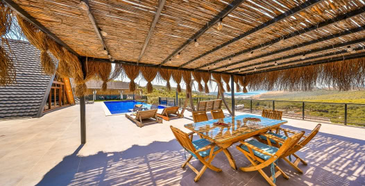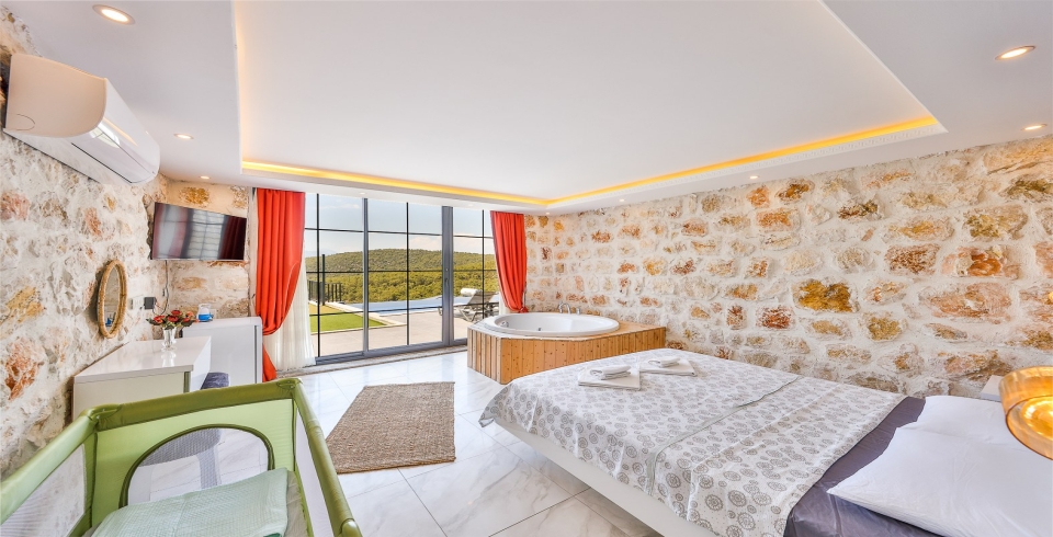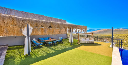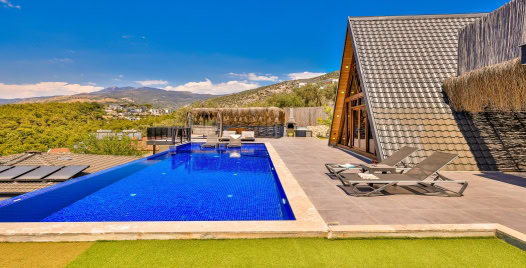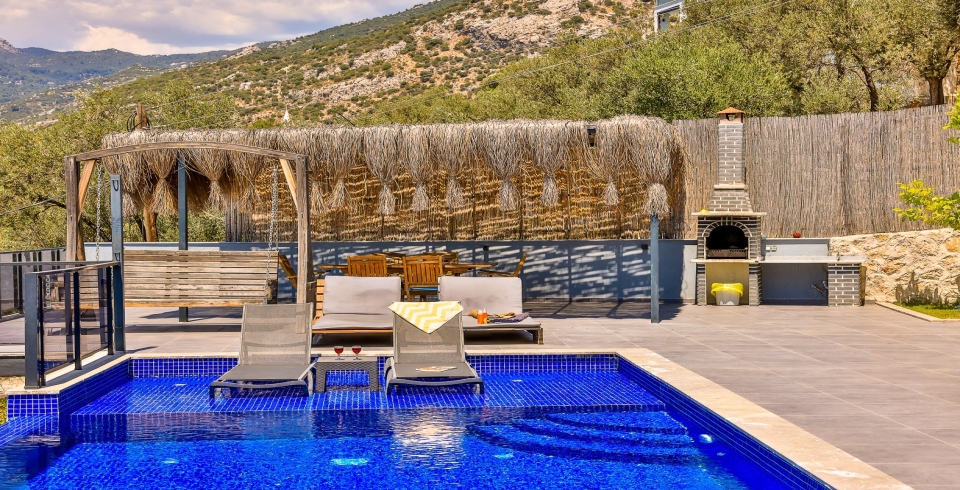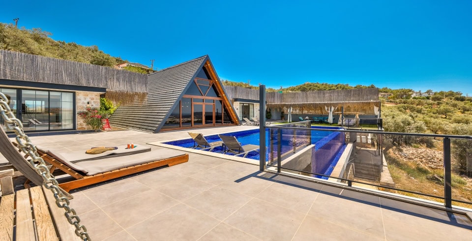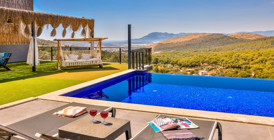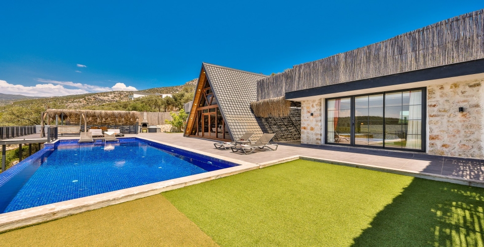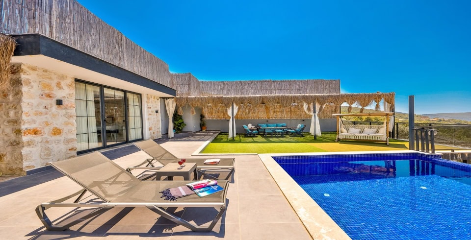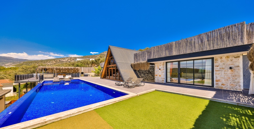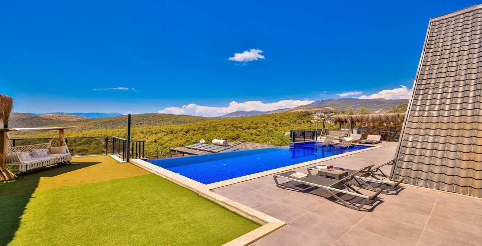 Villa Madrigal, Kalkan Akbel mevkiinde konumlanmakta olan yeşilliklerle kaplı muhteşem doğa manzarasına hakim kiralık villalarımız arasında yer almaktadır. Şık ve konforlu bir şekilde dekore edilen yazlık villamızda 3 adet yatak odası bulunmakta olup 6 kişiye konaklama imkanı sağlamaktadır. Aynı zamanda çift kişilik yatak odalarından bir tanesinde tüm yılın yorgunluğunu atabileceğiniz jakuzi mevcuttur. Havuz ve havuz terası korunaklı hale getirilmiştir, dışarıdan bir kimse tarafından görünmemektedir. Sevdiklerinizle doğa içerisinde sakin bir tatil geçirmek için Villa Madrigal ’i tercih edebilirsiniz.
