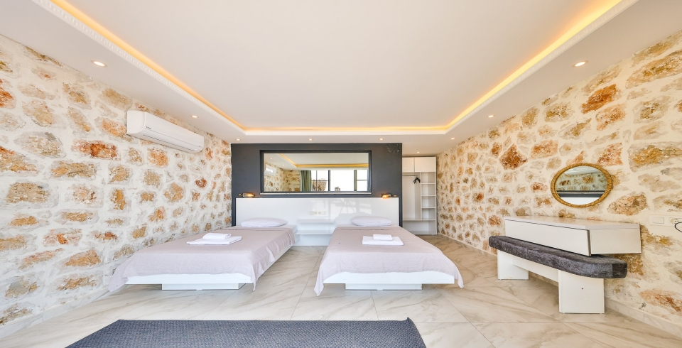 3. Yatak Odası : İki adet tek kişilik yatak,klima, elbise dolabı,komodin, makyaj masası, banyo ve tuvalet bulunmaktadır.