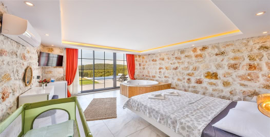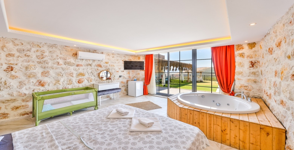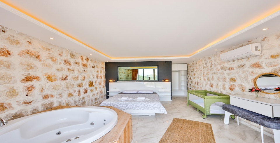 1. Yatak Odası : Bir adet çift kişilik yatak ,klima, jakuzı, komodin, elbise dolabı, makyaj masası, banyo ve tuvalet bulunmaktadır.
