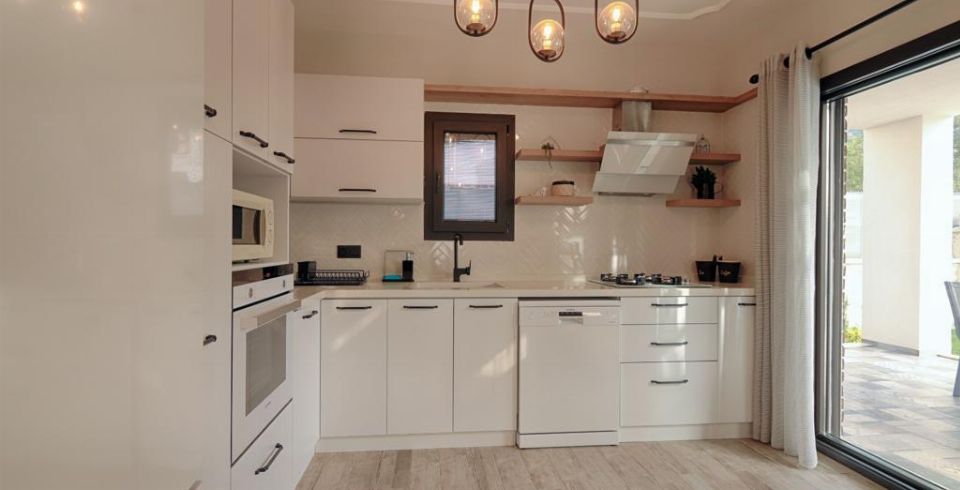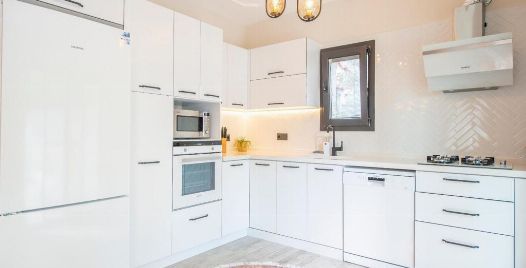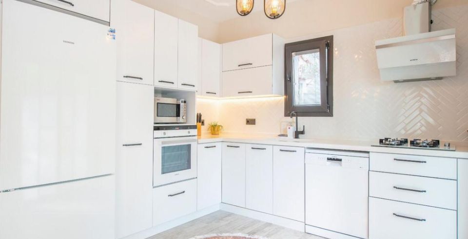 Mutfak : Amerikan mutfak tarzında tasarlanmış mutfakta, yemek masası sandalyeler, buzdolabı, bulaşık makinesi, çamaşır makinesi, 4’lü ocak, mikrodalga fırın, ankastre, fırın, kettle, su sebili, yemek takımı, tencere vb. mutfak ekipmanları mevcuttur.