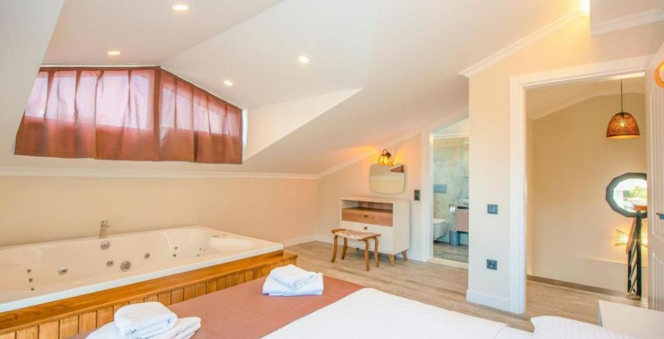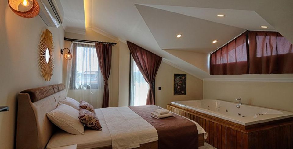 1. Yatak Odası : Çift kişilik yatak, komodin, elbise dolabı, klima, jakuzi bulunmaktadır.