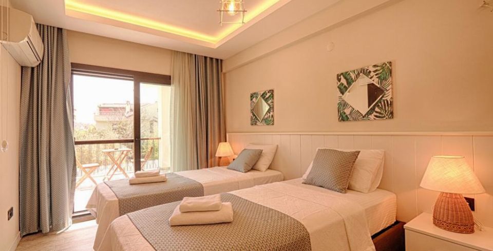 4. Yatak Odası : İki adet tek kişilik yatak, komodin, etejer, elbise dolabı, klima, banyo - tuvalet saç kurutma makinesi ve balkon çıkışı bulunmaktadır.