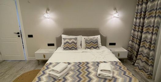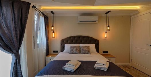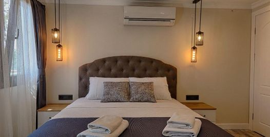 3. Yatak Odası : Çift kişilik yatak, komodin, elbise dolabı, makyaj masası, klima, banyo, tuvalet saç kurutma makinesi ve balkon çıkışı bulunmaktadır.